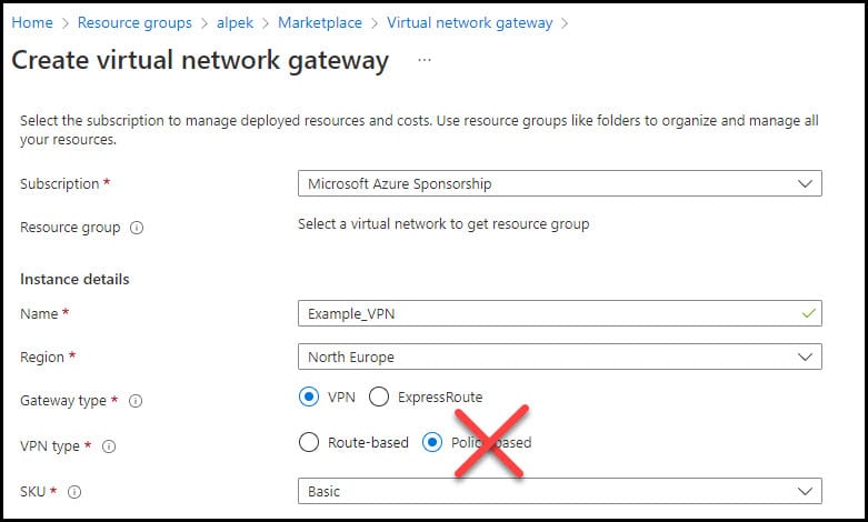 When you create a new VPN Gateway in Azure you get to choose which one you want – but be careful !